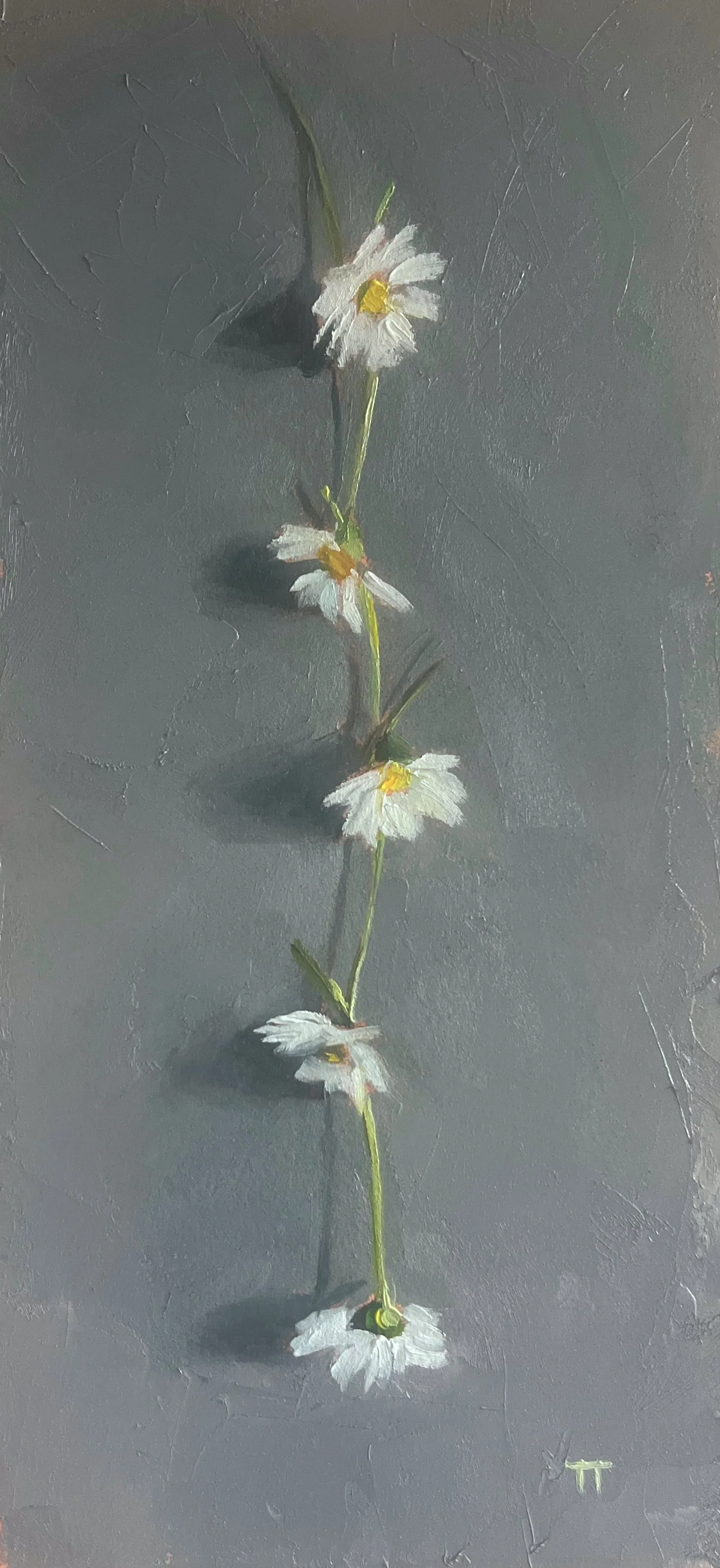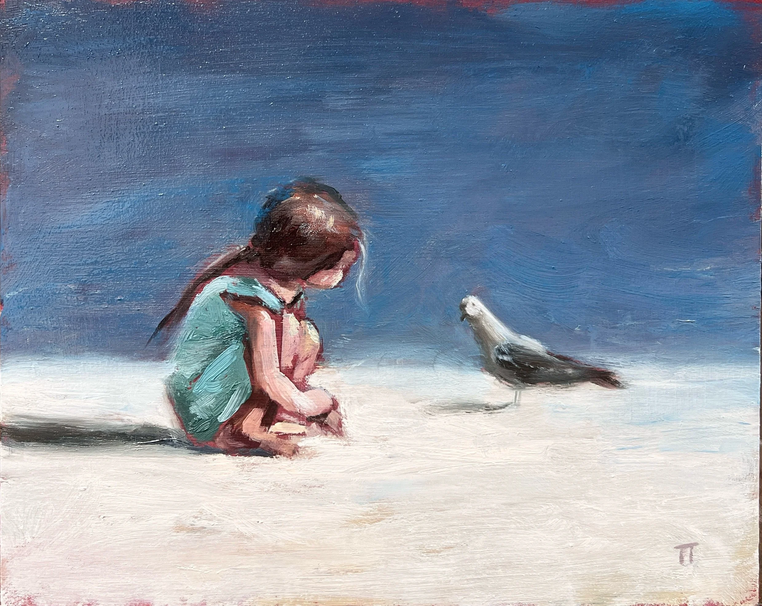 I paint figures and scenes in oil, aiming to spark a thoughtful reaction or a fleeting moment of joy or well-being.
