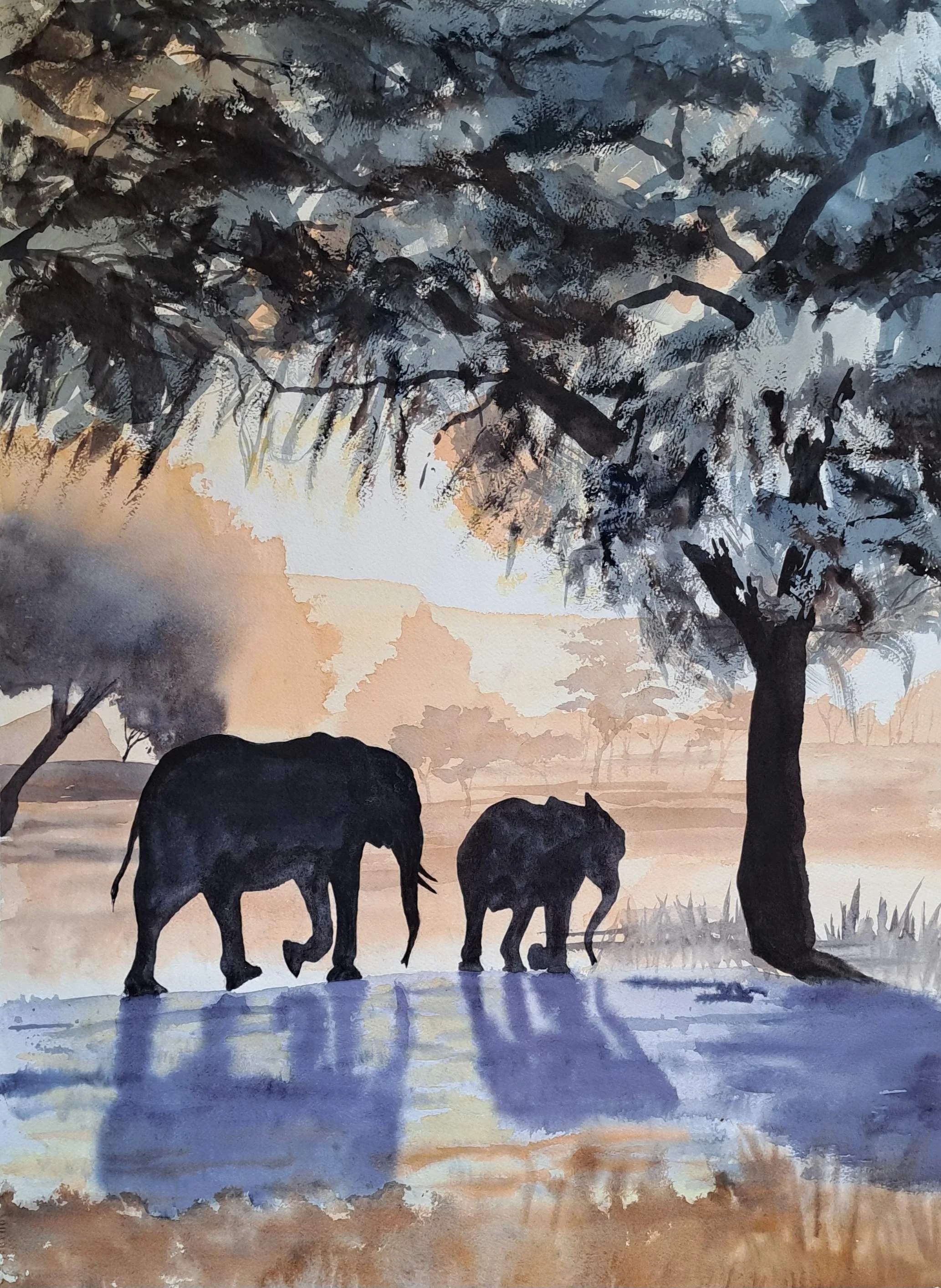 Born and raised in Zimbabwe and having lived and travelled across the globe, her subject matter is diverse, from African wildlife to English street scenes, and everything in between. She has a growing international footprint, with a collector base in UK, Australia, South Africa and USA. A fair proportion of her work is commissioned in watercolour, acrylics or oils.